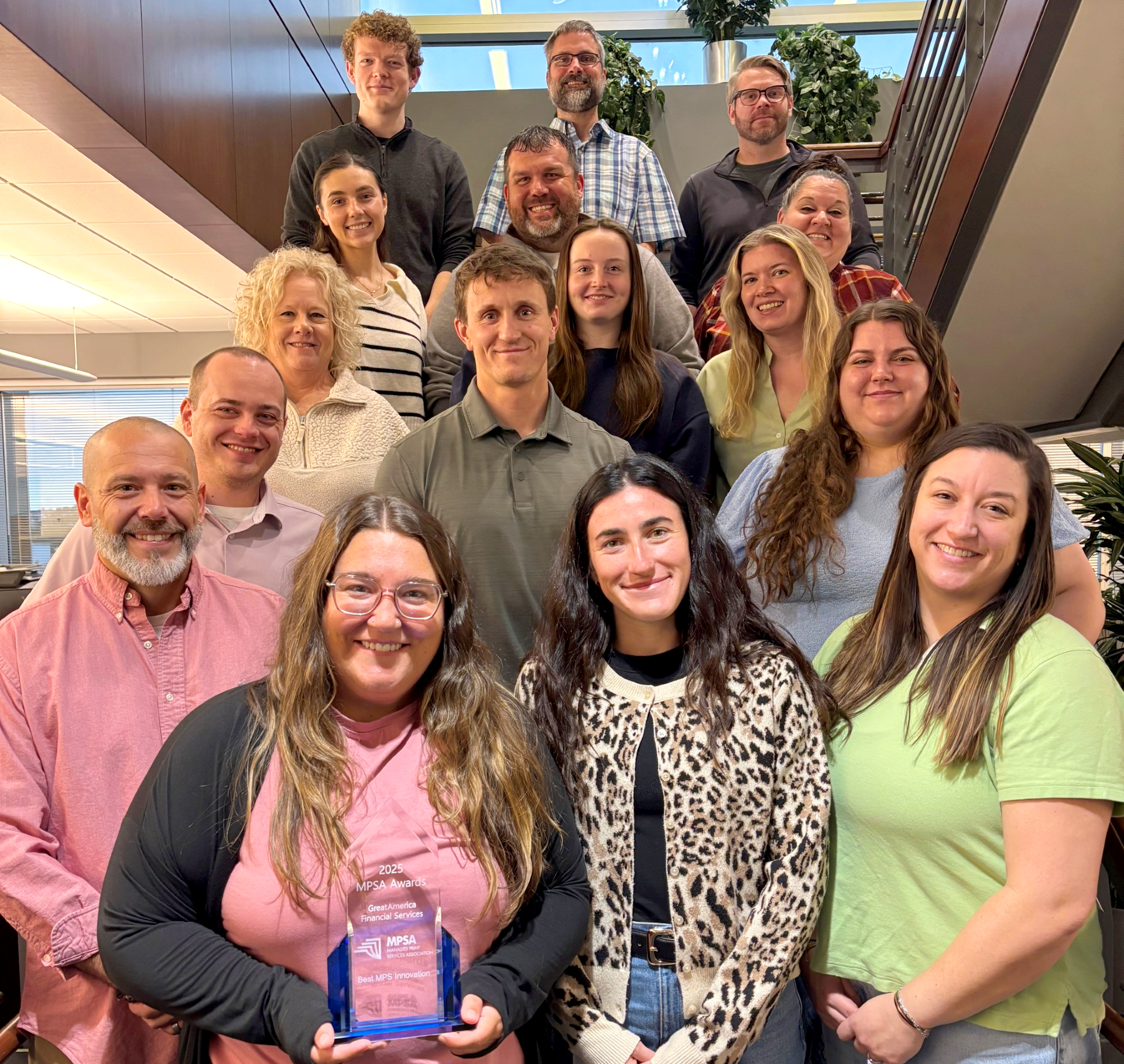 The award is proudly displayed on the 8th floor of the GreatAmerica headquarters located in Cedar Rapids, Iowa, home to our office equipment group. Placing this treasured testament here ensures the team that earned it sees it every day, serving as a reminder of their dedication and hard work. It stands not only as recognition of achievement but also as inspiration to continue delivering excellence.